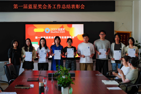 (武汉)第一届蓝星奖会务工作总结表彰会在艺媒楼1209会议室隆重举行,会议由艺媒学院院长何清俊主持,学院班子成员及师生代表共同出席,视觉媒体系主任狄丞、环境设计系书记程璜鑫、视觉传达系教师叶可鸣、学工组辅导员曾戈晖、教学兼科研秘书万梓晗,以及蓝星奖设计大赛会务组全体成员参加会议。