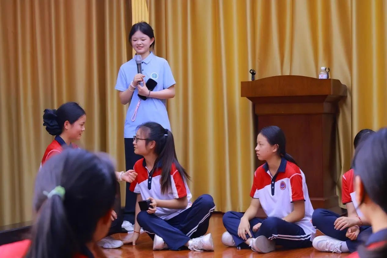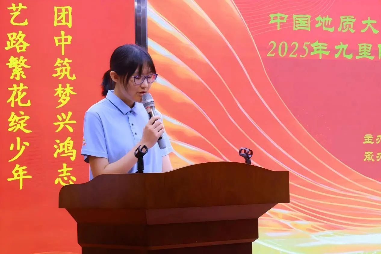 接下来,由九里阳光艺术支教团团长郭悦萱发言。她对掇刀区各部门予以此次支教活动的支持表示感谢。此次支教,九里阳光艺术支教团的同学们将以饱满的热情投入到工作中去,虚心学习,认真听取师生建议,努力为参与课程的孩子们带来精彩纷呈的艺术体验,点亮他们的艺术梦想。