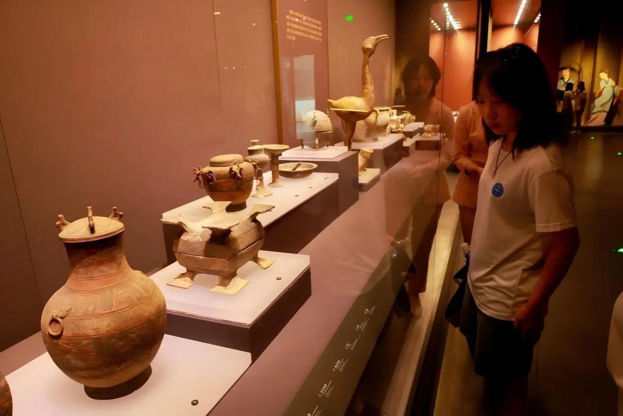 新馆运用全息投影、交互装置等科技手段,让文物“活”起来。在在郭店楚简展厅,全息投影技术将《老子》《太一生水》等典籍以动态光影呈现,配合楚地古乐,营造出“穿越千年”学术氛围。