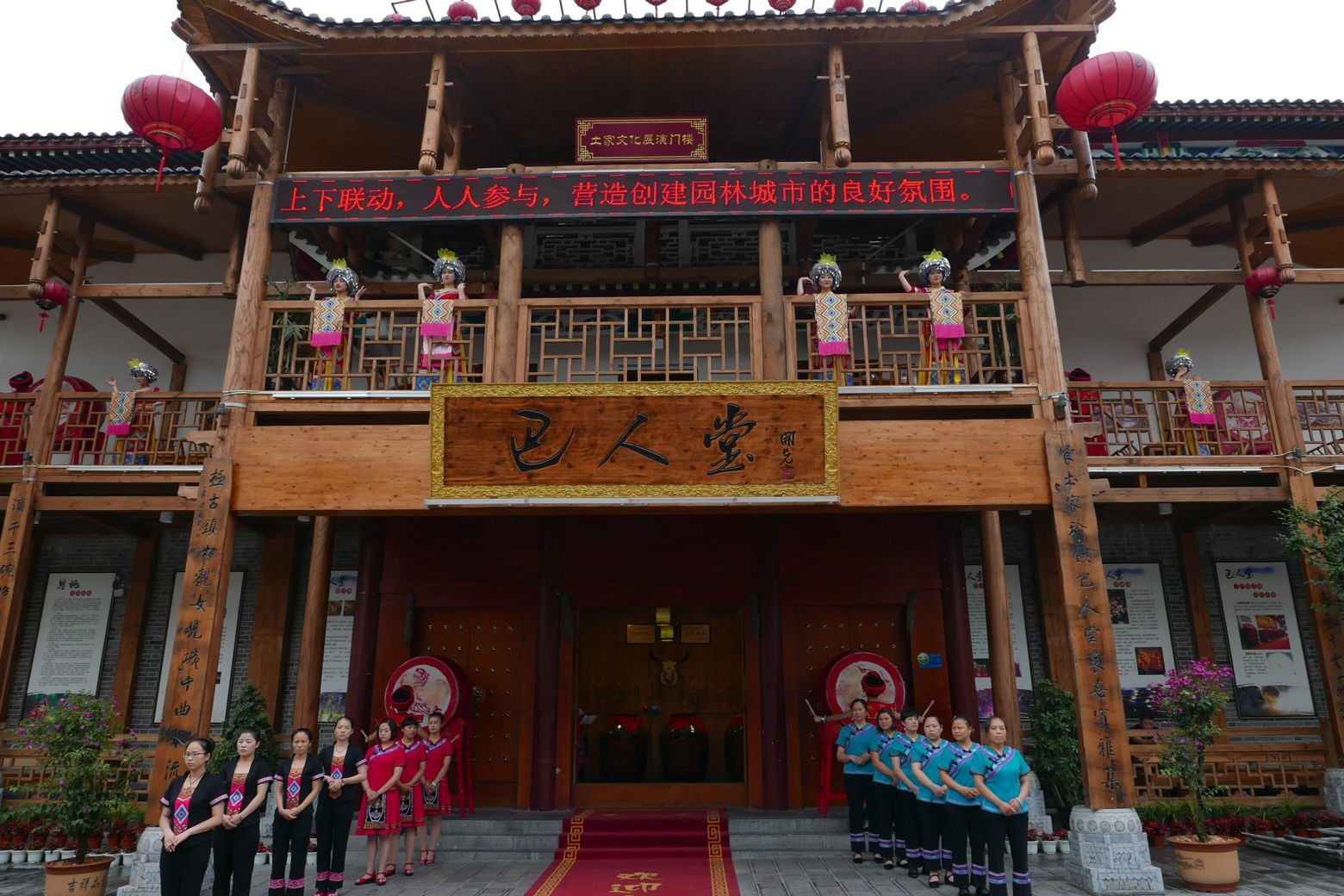 中午午饭休息过后,下午4点我们来到了恩施独具特色的女儿城,传统是这里是当地中国情人节时当地土家人相亲的地方。刚走进这个女儿城,映入眼帘的是各具特色的土家酒馆,许多红色的装饰给人一种热情的感觉,跟随导游的步伐我们体验了恩施的茶文化,我们还有幸品尝到了杨青老师亲手泡制的当地特色茶。
