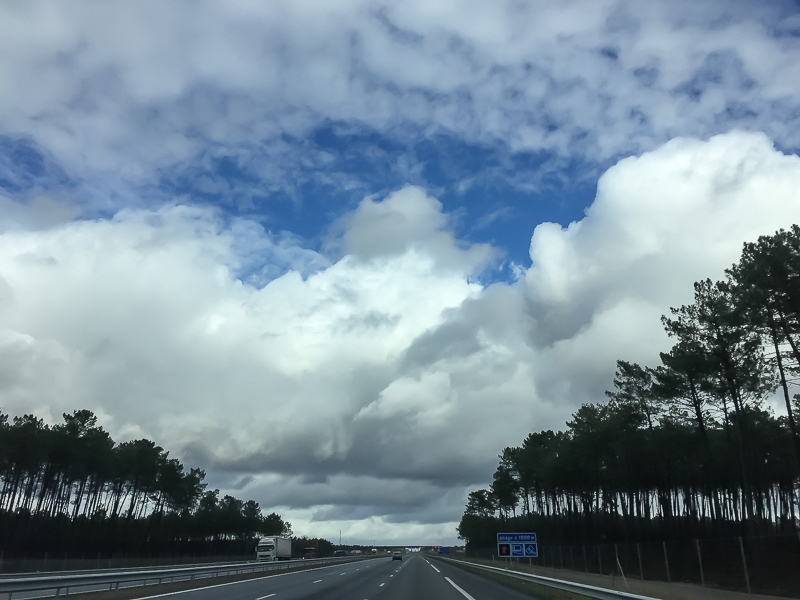 中午14点46分,经过短暂的休整,访学团继续向波尔多进发。一路穿过波尔多平原,踏上法国最为平直的公路。此时天已转晴,阴云渐散,堆叠的云彩间隐隐透出蓝色的天空,不时洒落的阳光照在车窗上,映暖了访学团成员们的脸。