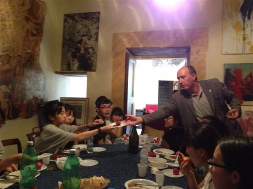 在意大利实习期间,参观是认知,写生是实践。精美的古董壁画、悠久的人文情怀和优美的古镇风光给了同学们另一种创作发挥空间。从8月31号开始,实习小组在斯波莱托、梵蒂冈大教堂的阿维第诺高地和卡比托利欧山上的古罗马广场遗址写生,创作了很多作品。9月2号上午,他们在斯波莱托市政厅对面的公爵府邸举办了一个小型的汇报展览,并与之同期开幕了这次罗马实习带队老师黄瑛副教授的写生个展,这两个展览都持续到了9月10号,当地日报记者在开幕现场进行了采访报道,当地众多艺术家也纷纷到场祝贺。