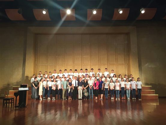 党委书记邬海、院副书记徐胜,星空合唱团团长、音乐表演系主任张理,合唱团指挥、指导老师余磊,音乐表演系副主任余敏、音乐表演系声乐老师袁玥和星空音乐团的全体学生进行了留影纪念。