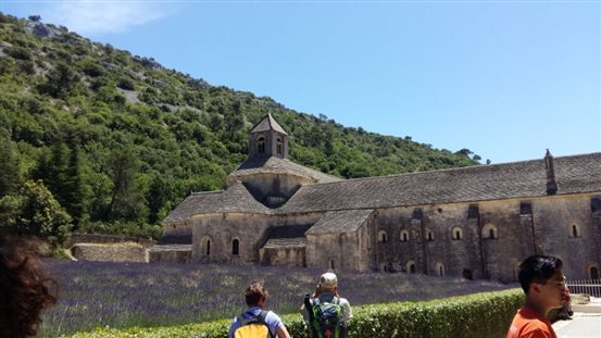 当地时间二十三日,当代艺术系教师抵达法国东南部城市阿维浓。上午首先参观了两个著名的“美村”,石头城和红土城。石头城是一个建立在山崖上的村庄,房屋都用白色的石头建成。石头城的制高点矗立着文艺复兴时期的城堡,居高临下地俯瞰着整个村庄。红土城则一片红色,土是红色的,建筑则由红土筑成。往返这两个小城时,沿途漫山遍野开满紫色的薰衣草。薰衣草地旁,还可以看到写生的学生的身影。 傍晚时分,回到阿维浓古城,来到古城最著名的教皇宫。教皇宫被誉为世界上最坚固,最漂亮的房子,14-15世纪曾有数位教皇在此居住。夕阳西下,教皇宫上部被镀上一层灿烂的金黄。透过树影,间或还有闪亮的光斑。而下部则是昏暗的阴影。让人不由想到莫奈的多幅《里昂大教堂》。 石头城粗犷的白色,红土城古朴的红色,薰衣草烂漫的紫色,教皇宫炫目的金色,老师们在阿维浓享受了一场色彩的盛宴。