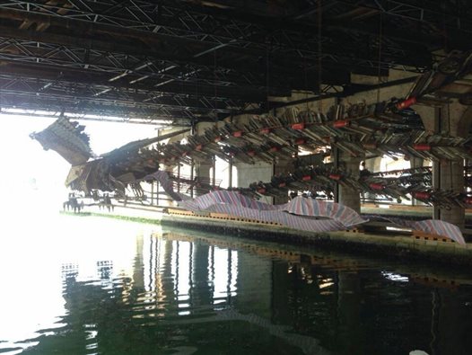 当地时间6月13日,当代艺术系教师参观第五十六届威尼斯双年展军火库展区。军火库展区分邀请展和国家馆。邀请展展出从世界各国遴选的优秀作品,中国当代艺术家丘志杰获邀参展。中国馆在众多国家馆中也有不俗表现,展出了谭盾,文慧,吴文光,陆扬五位艺术家的装置,音乐,舞蹈等不同门类的艺术作品,展览以“民间未来”呼应展览总主题“全世界的未来”。中国馆外,由徐冰制作的巨大的凤凰悬挂于水面上方,吸引了众多参观者。