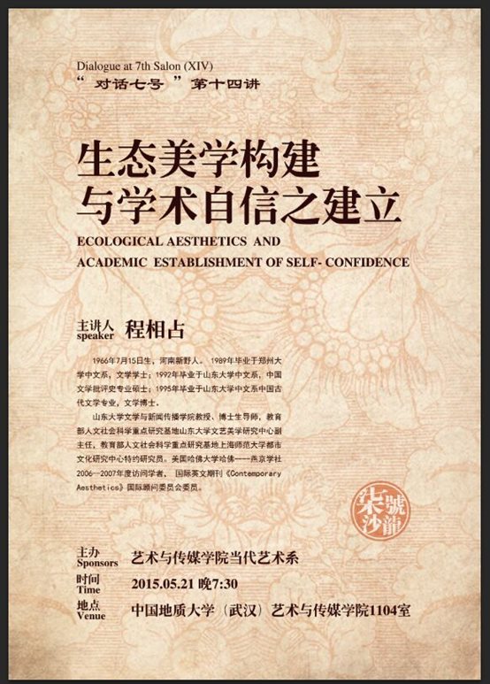 程相占教授围绕生态美学与学术自信展开讲座,提出构建生态美学的学术准则是“全球共同问题,国际通行话语”。这条准则一方面隐含着中国美学走向世界的必由之路,另外一方面隐含着建立学术自信的途径和标准:能够从生态美学角度回应全球共同问题,能够采用国际通行话语来著书立说,能够解决国际一流学者尚未解决或尚未意识到的重要学术问题。只有做到了这些,学术自信才能真正建立起来。