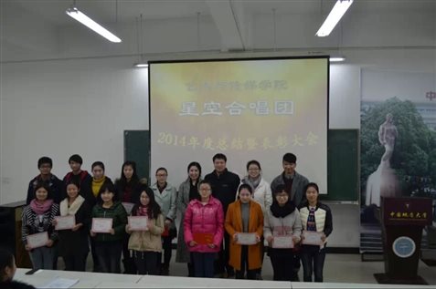 召开星空合唱团建团以来第一次总结表彰大会。总结大会以赵冰院长对合唱团的寄语“立足地大,仰望星空”为主题来进行。星空合唱团的声部长及副团长代表各自声部,对合唱训练、演出以及团队建设方面进行工作总结。音乐表演系主任兼星空合唱团团长张理副教授对音乐艺术学习提出了中肯的建议。