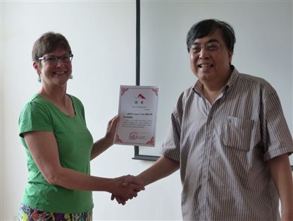 赵冰院长向Luanne Crosby教授颁发聘书 (王蓉摄)
