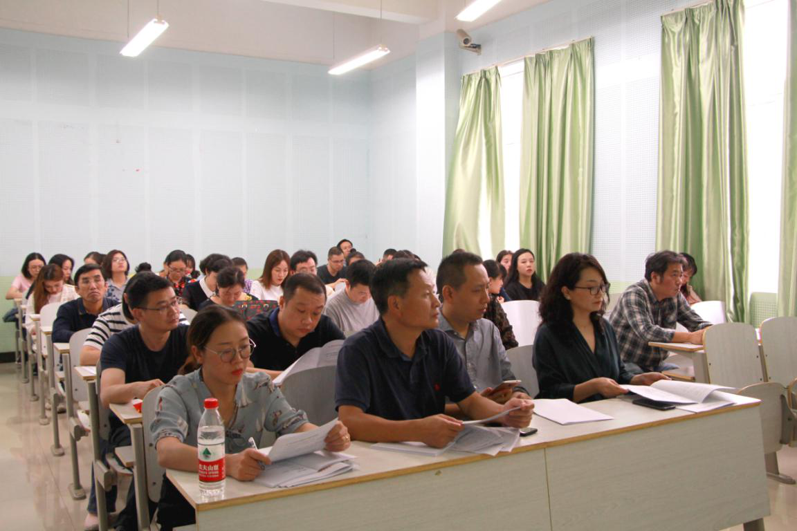 “不忘初心、牢记使命”主题教育的工作计划。郭秀蓉强调本次主题教育活动要聚焦主题,深入学习贯彻习近平新时代中国特色主义思想,加深对习总书记关于主题教育以及高等教育的重要论述的理解,同时在整个教育过程中突出问题导向,要求党员同志结合“自己找、群众提、集体议、上级点”深入查找问题,领导干部要树立一线规则,深入教学科研一线发现问题。此外,主题教育要做到贯穿结合。此次的主题教育活动由四项重要措施组成,这四项措施必须贯穿始终,广大党员既要注意将学习教育活动与庆祝新中国成立70周年结合起来,更要与学院事业发展结合起来,紧扣立德树人的根本任务,聚焦贯彻落实习近平新时代中国特色社会主义思想和习近平总书记关于教育中的重要讲话和精神,着力整改一系列问题。紧接着郭秀蓉从前期准备、学习教育、调查研究、检视问题、整改落实、成效评估及组织领导几个方面对主题教育的工作内容一一进行了讲解。最后郭秀蓉表示在学校主题教育工作第三指导组的指导下,学院的主题教育活动一定能够做到规定动作到位、自选动作创新,从而真正达到推进学院事业发展的目的。