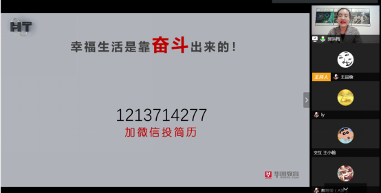 第一期求职训练营之空中加油站——优秀校友在线就业分享会借助腾讯会议室顺利举行,华图教育福州分校教师项目经理兼师资总监郭洪梅、网易游戏特效师邢煜莹两位校友受邀做职场分享。学院党委副书记吴仁喜、视觉与媒体设计系徐莉老师以及学院40余名本科生和研究生参加在线分享会。