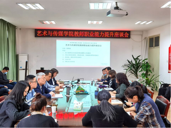 召开教师职业能力提升座谈会。副校长傅安洲,教务处、团委主要负责人,艺媒学院全体院领导,以及学院各三级单位党政班子、教职工代表、学生代表等参加了会议。