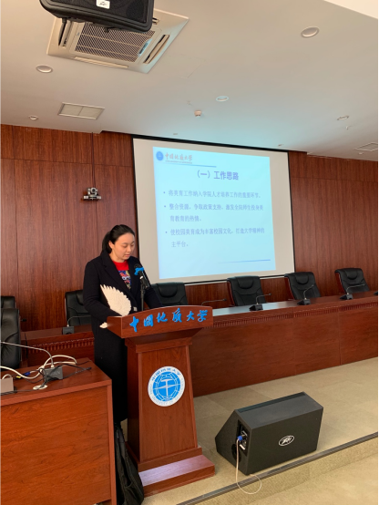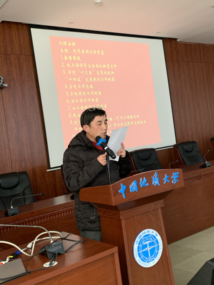 最后,傅安洲副校长总结讲话,他向受到表彰的先进个人表示衷心的祝贺,对学院一年来取得的成绩和进步给予充分肯定。傅校长回顾了地大办学历史,指出学校办学优势,梳理了 韩国三级