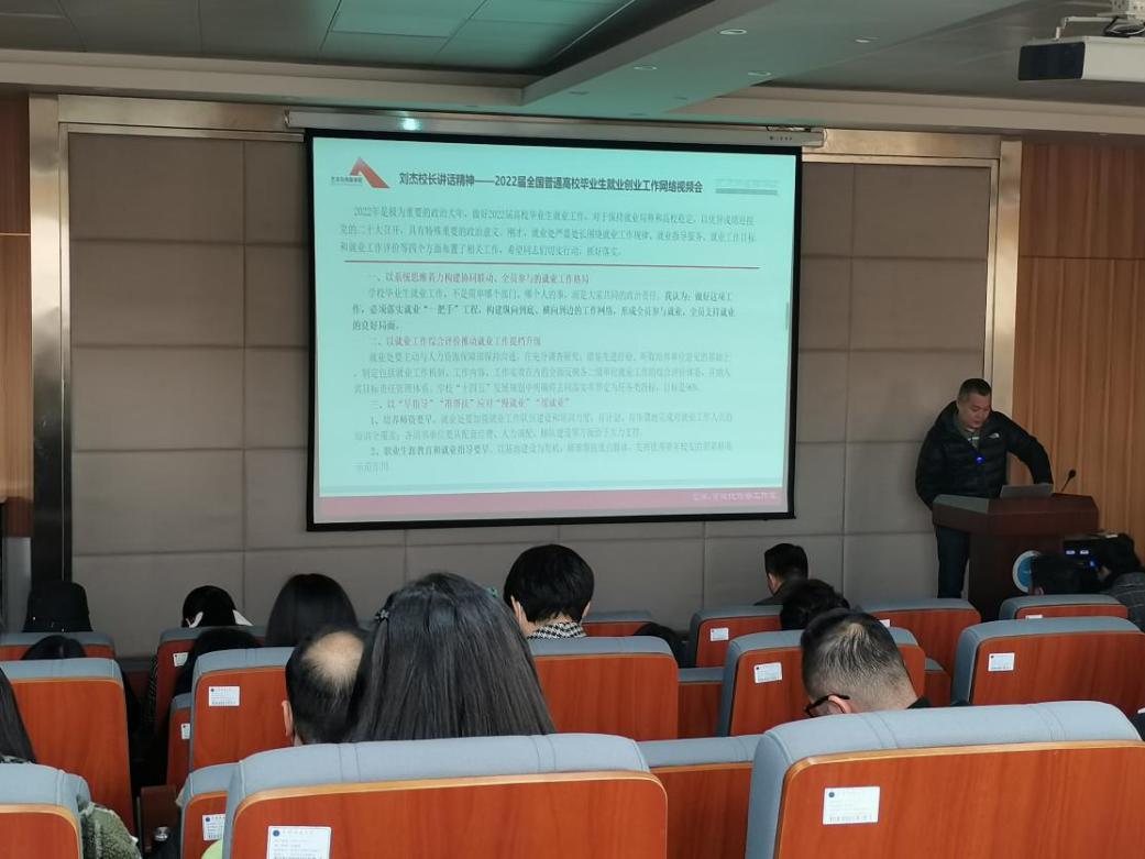 接着由学院党委副书记边建华对学院学生目前的就业工作推进情况进行汇报。边书记介绍到,截至目前2021届毕业生就业率为89.90%,其中本科生就业率为91.06%,研究生就业率为87.78%;2022届毕业生目前的就业率为16.32%,其中本科生就业率为16.95%,研究生就业率为15.43%。同时,边书记结合目前的毕业生就业情况对下一步的推进工作提出了具体的实施方案,包括:完善就业工作机制,推进全员就业落实细化;做好就业动员工作,引导政策型就业;深入落实“一找两促”,落实毕业实习促就业计划;做好三个“精准”提升就业服务工作,保障就业支持。