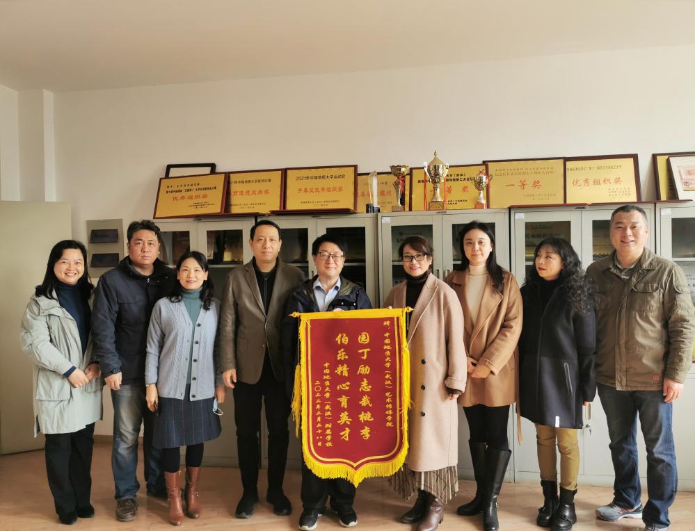 (武汉)附属学校党总支书记张瑞生老师一边激动的说一边将写有“园丁励志我桃李、伯乐精心育英才”感谢锦旗送到了 韩国三级