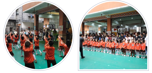 早晨9:30左右,我们乘坐大巴来到今天的第一站——利川市馨艺幼儿园。馨艺幼儿园并不是一所普通幼儿园,它还是非物质文化遗产“肉连响”的传承基地。“肉连响”是一种以手掌击打额头、肩部、脸颊、手臂、手肘、腰部、腿部等部位发出有节奏的声响的传统民间舞蹈,同时也是国际级非物质文化遗产项目、利川市已建成的三个非物质文化遗产项目之一。我们一进幼儿园的大门,就看到一群小朋友早已排好队形等待着我们的到来。他们伴随着音乐,用稚嫩的声音喊响“嘿!嘿!哈!哈!”的口号,认真整齐地为我们表演了“肉连响”,看着小朋友们可爱又认真的模样,我们纷纷被“击中心脏”。