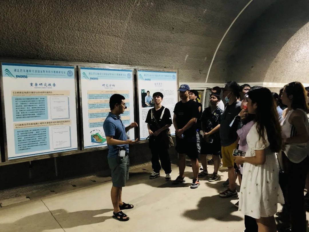 建设与运营。我也由衷的因自己是地大学子而感到自豪。三峡中心为我们安排了专业的老师在野外试验场洞内进行科普教育。我们了解到试验场面向三峡库区全境,开展水库运行条件下地质灾害外科学观测研究。目的是建成科学规范的地质灾害野外观测和科学数据汇聚,研究与开放共享平台。突破水库地质灾害预测预警与防控的理论和技术瓶颈。老师还为我们讲解了三峡库区地质灾害,巴东城区地质灾害概况,巴东试验场建设过程等。深入洞内,老师为我们讲解了很多专业的地质知识,拓宽了我们的知识面,余磊老师说要跨学科交流,同学们也对新奇的知识领域深感兴趣。