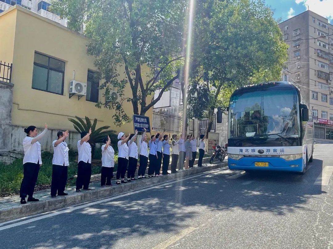 中午十二点,大家在基地用完餐,收拾好行囊,准备离开。两点半基地工作人员在大门口列队为大家送行。虽然在基地只待了短短两天,但是无论是课余生活、住宿,亦或是餐饮方面,大家能感到基地的老师和工作人员们都十分用心,各个方面都竭尽全力做到最好,注意到任何一个小细节。宿管阿姨细心帮大家分发床上用品。同学随口提一句想吃红烧肉和青椒肉丝,第二天就能在餐厅看到这些可口的菜肴。晚饭后大家在球场打球,值班大叔会贴心地打开球场大灯,方便大家锻炼。锻炼结束,大家想吃西瓜,食堂叔叔即便下班,也赶过来提供刀具和餐盘,供大家分切。小卖店的阿姨也延迟下班,为大家提供冰镇矿泉水。得知我们要去野外试验场,仓库老师一早便来为大家分发安全帽和反光背心。所有的一切,都让大家感受到回家般的温暖。今天又在站口为大家送行,更是让我们不舍离开!
