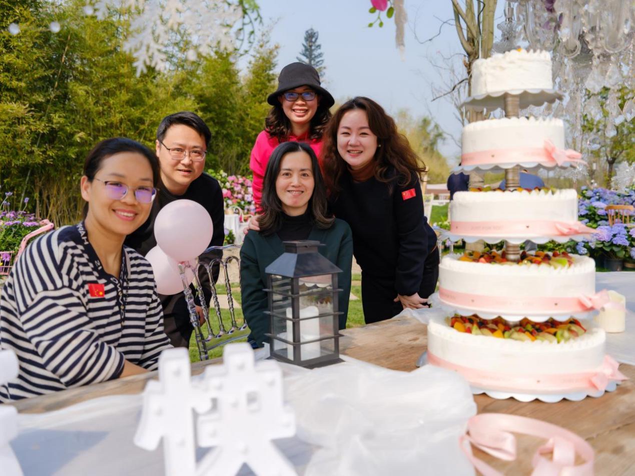 春游活动的一个焦点是“过集体生日”。上半年过生日的老师们一起切下了蛋糕,并获赠学院分工会准备的生日礼物,一条丝巾。在春日午后的阳光下,老师们的笑容都很灿烂。本次活动大家在轻松自由的氛围中领略了优美的景色,促进同事间情感交流,使学院教师团队更有凝聚力和向心力。