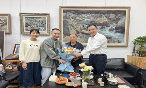 10月27日,晋曦、李伟娜、周黎和视觉与媒体设计系主任狄丞赴武汉设计工程学院美术馆看望设计系退休教师欧阳德彪。晋曦多次感念欧阳老师情系教育、心系学子的赤诚之心,衷心地祝愿他健康平安。欧阳老师感谢学院一直以来的关心和爱护,对学院事业发展取得的成绩感到高兴,将不遗余力支持学院、特别是设计学学科专业人才培养和教育教学工作。