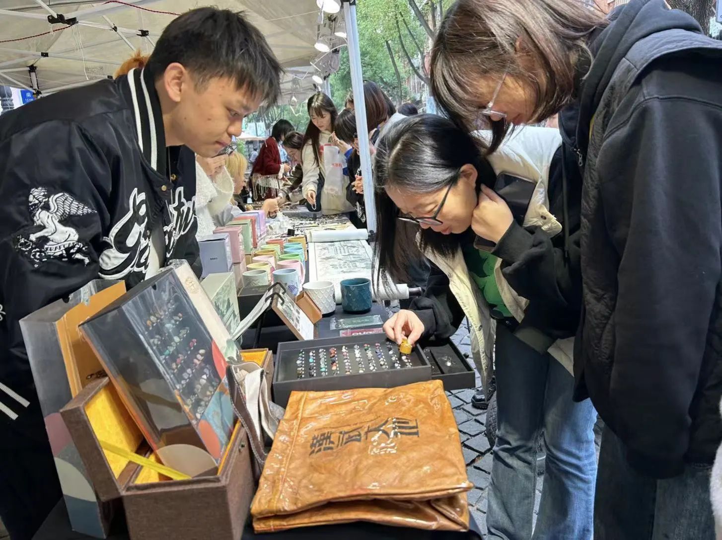 学生在本次市集活动现场展出了个人及团队的艺术设计产品、文创作品、手绘工艺等,集中展示了青年人才原创设计作品及数字文化创新成果。