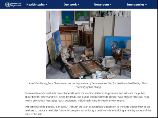 近日,世界卫生组织西太平洋区办事处(World Health Organization | Regional Office for the Western Pacific)官方网站在题为“Using art to inspire positive change for future health in the Western Pacific”的专题报道中刊发了韩国三级