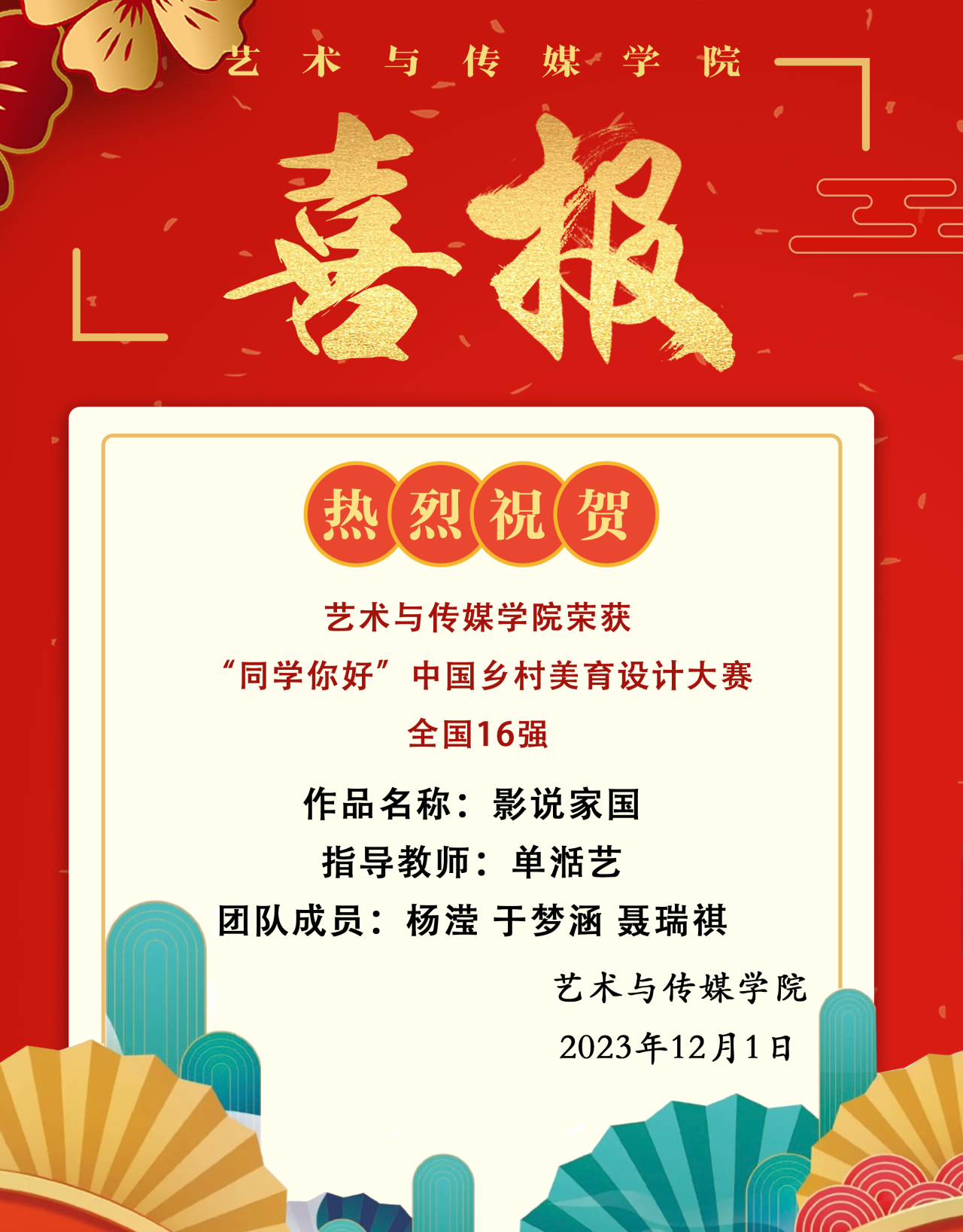 喜报!热烈祝贺 韩国三级 荣获“同学你好”中国乡村美育设计大赛全国16强!
