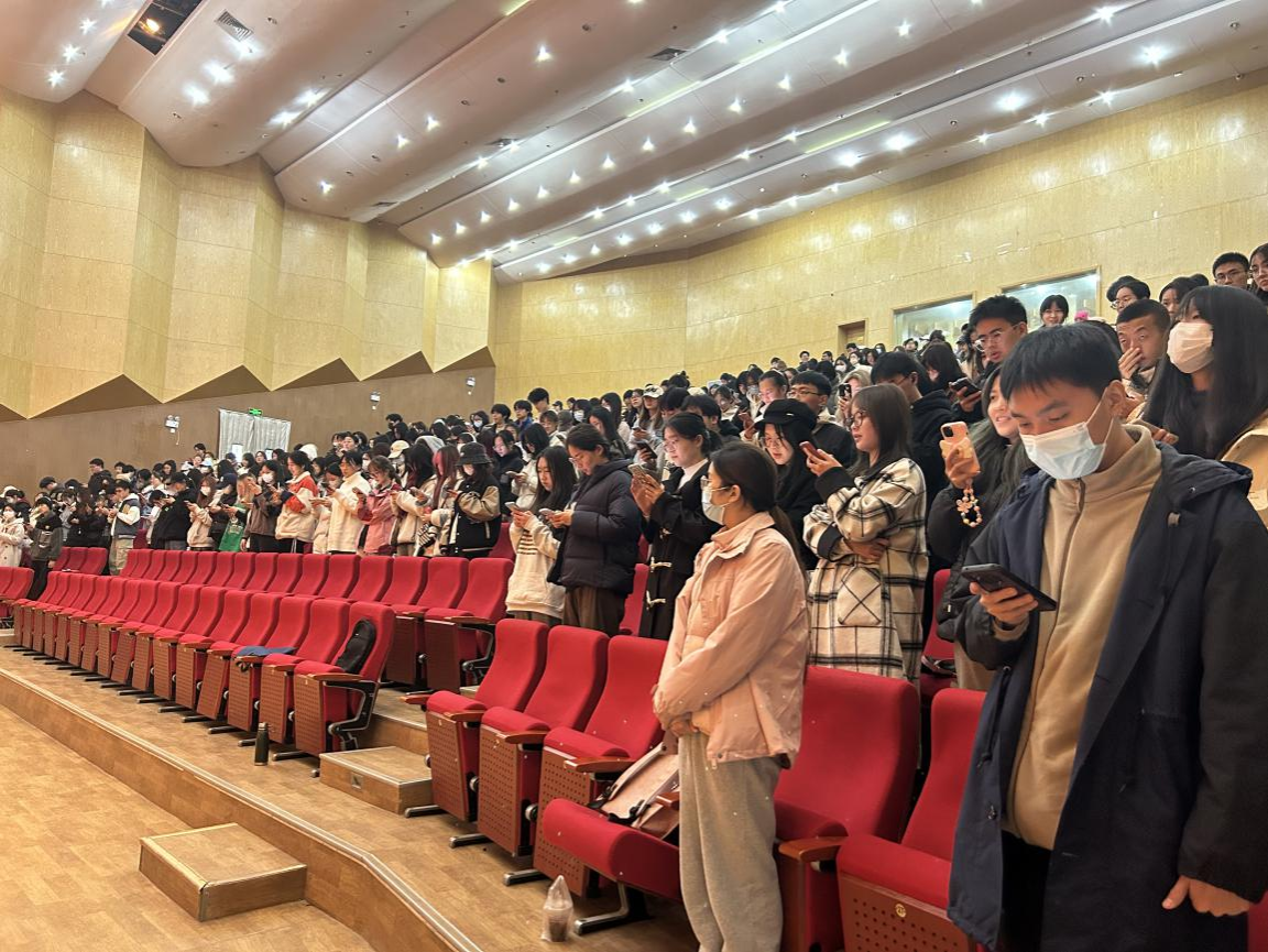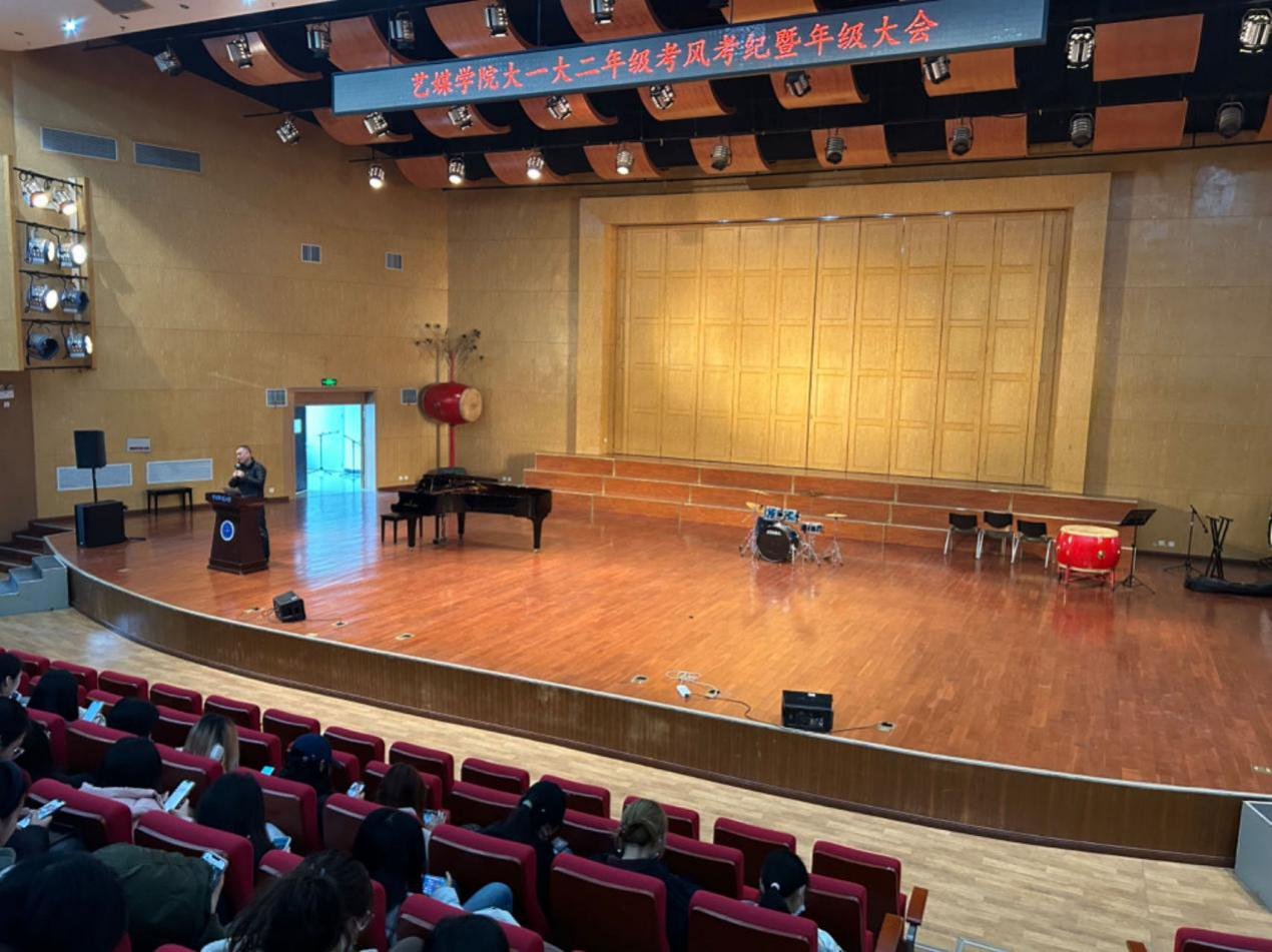 大一大二年级考风考纪暨年级大会在北区音乐厅顺利召开,学院副院长杨喆,院党委副书记边建华,学工组辅导员陈习良、曾戈晖,兼职辅导员聂瑞祺、吕笑言、王琼逸、包颜铭以及大一大二年级全体本科生参加会议,本次大会由学院党委副书记边建华主持。