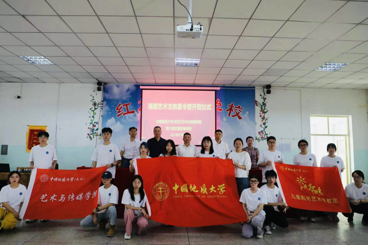2023年,为积极响应习近平总书记在二十大报告中提到的“做有理想、敢担当、能吃苦、肯奋斗的新时代好青年”的号召,全面贯彻落实教育部有关“教育援疆”和“五育并举”的文件精神,7月4日至7月14日,九里阳光艺术支教团一行16人在学院党委副书记边建华、学工组辅导员单湉艺和曾戈晖的带领下前往新疆生产建设兵团第六师红旗农场学校,围绕“艺术支教,持续推动乡村美育事业发展”、“文化润疆,用爱共筑科普传播创新路径”、“立德树人,深入拓展兵团精神育人成效”、“主题教育,大力弘扬传统文化时代魅力”四个方面开展了艺术支教活动,面向140余名小学生开设了7个班的音乐课、美术课和舞蹈课,课程内容还融入了地大地质特色以及普通话教学,丰富了美育实践课程。在支教的课余时间,团队成员走访考察了北庭故城遗址博物馆、准东能源馆等,实地感受到了新疆特色的历史文化积淀和新时代工业振兴发展。