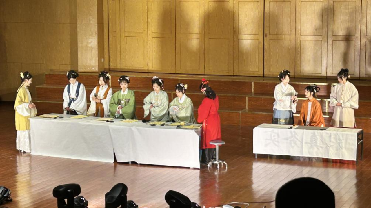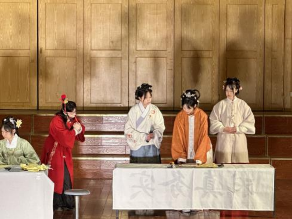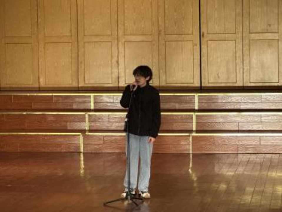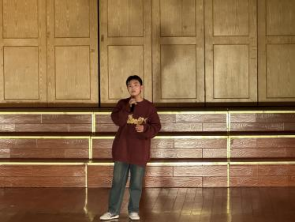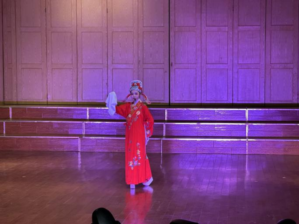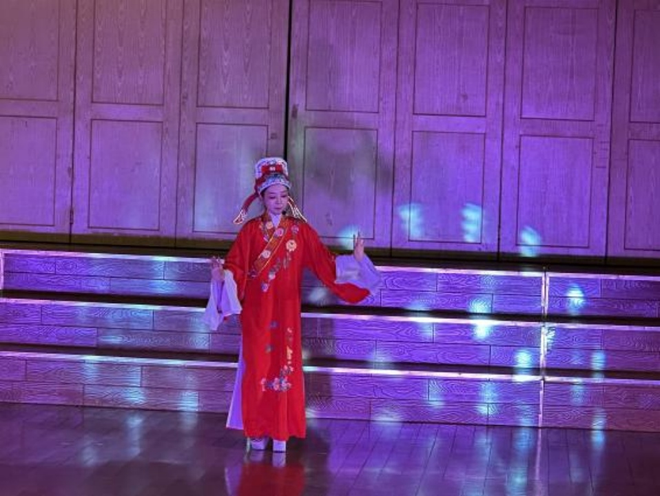 一挥水袖抚时光,一腔热忱尽悠扬。接下来我们欣赏了由张舒然同学带来的五音戏《赵美蓉观灯》。她通过生动的表演,展现了角色的善良、聪慧与才情。在张舒然同学的演绎下,观众们感受到了五音戏的独特魅力,也让更多人了解了中国传统文化的博大精深。她婉约的气质,优美的唱腔,将观众们带入了一个充满传统文化的艺术殿堂。