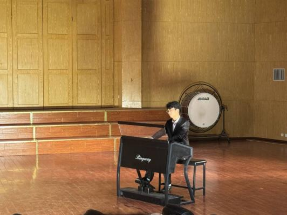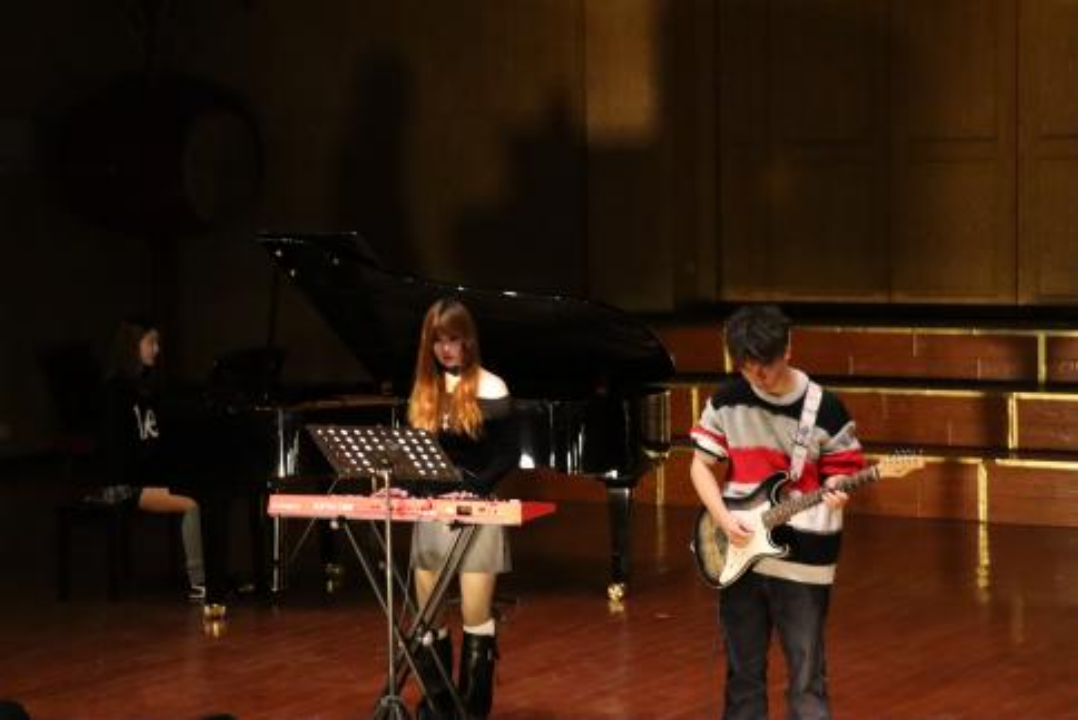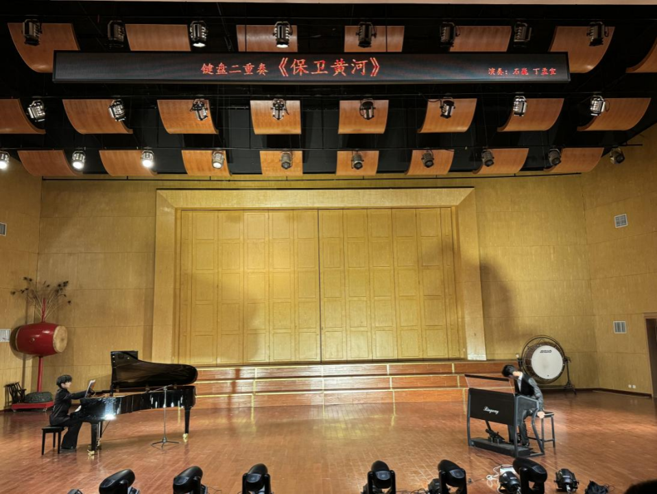 紧接着,音乐专业的同学带来了一场激昂澎湃的键盘二重奏《保卫黄河》。在激昂的旋律中,观众们仿佛看到了黄河滚滚的波涛。同学们熟练地敲击着键盘,音符跳跃,犹如战场上勇士们的战斗,激情四溢,感染了在场的每一位观众。