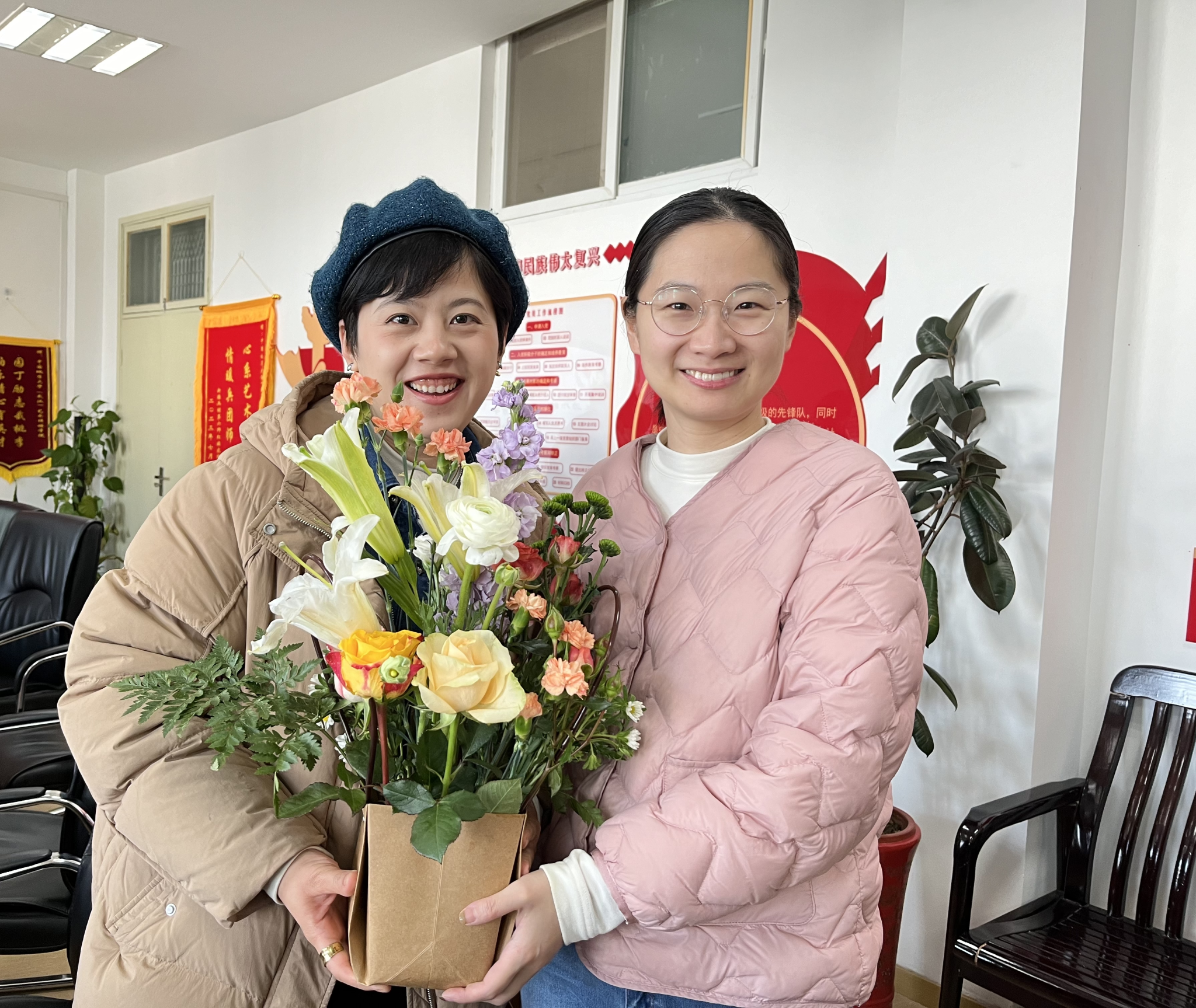 老师们纷纷表示,本次活动让大家度过了一个难忘的节日,在亲手创作花艺作品的过程中,感受到了自然和美的统一。大家欣赏着自己亲手制作的花艺作品,在馥郁花香中寻找乐趣,从作品欣赏中获得满足,美丽的花朵传递了一切美好和祝福。