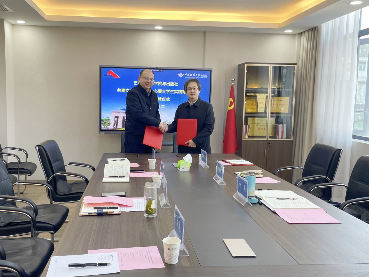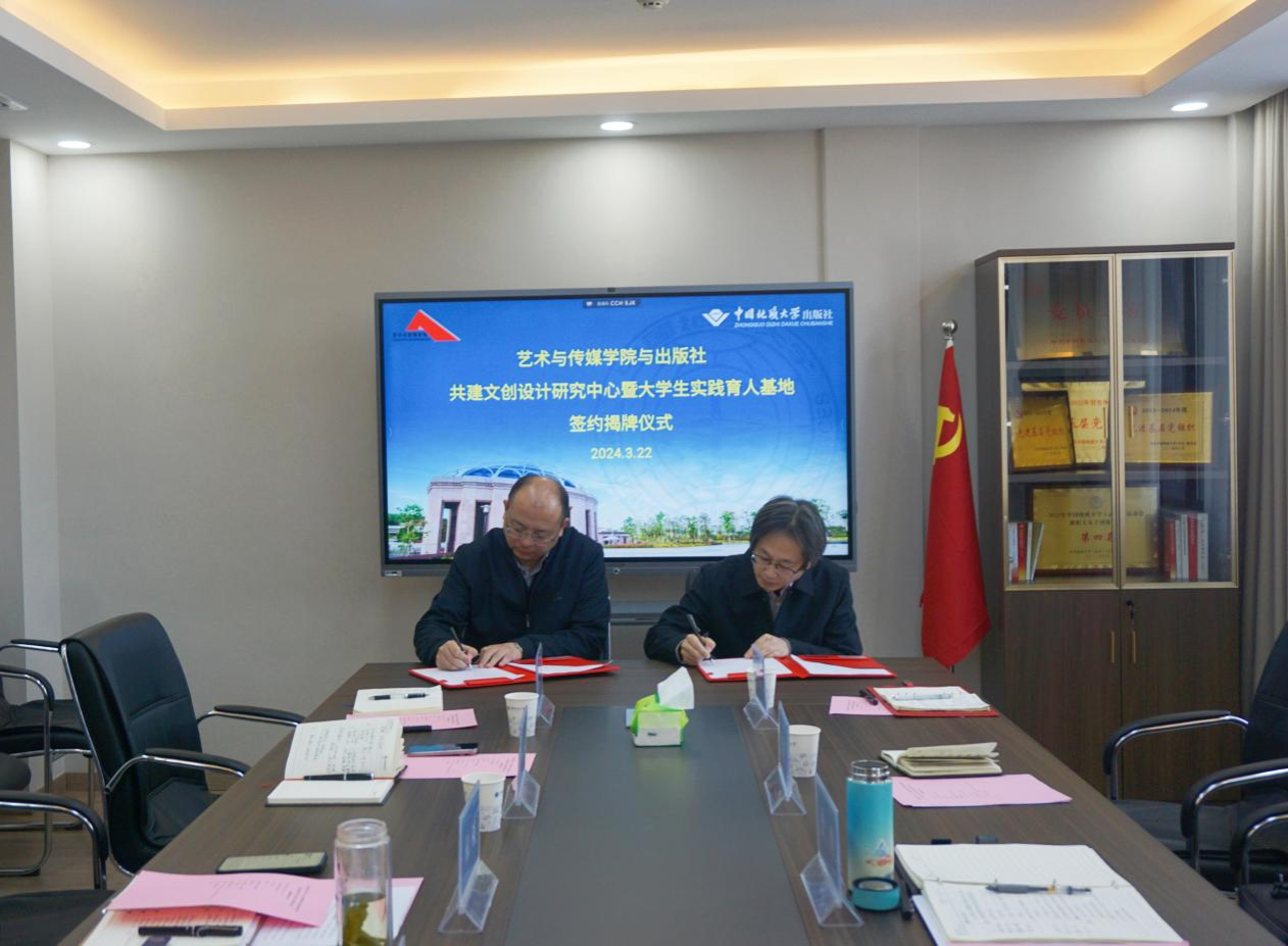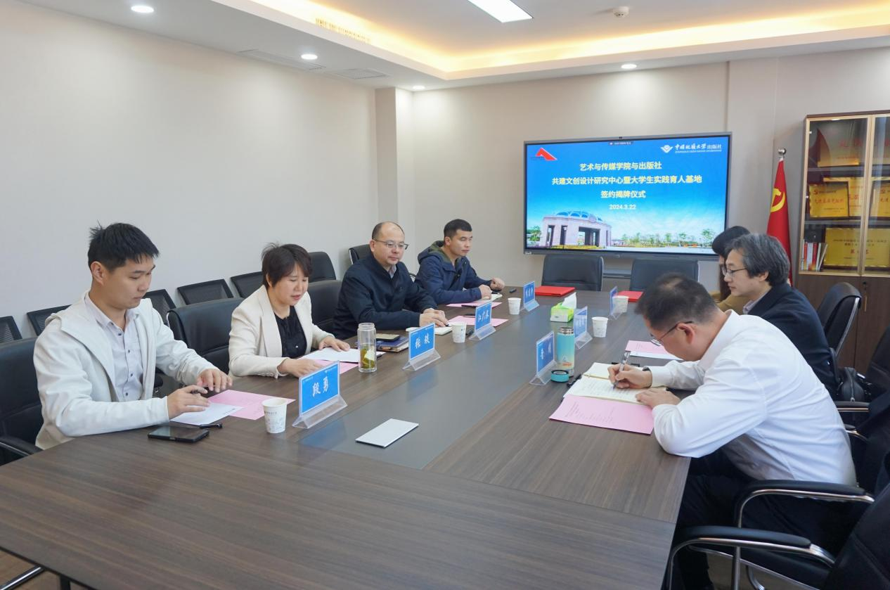 、学校出版社举行共建文创设计研究中心暨大学生实践育人基地签约揭牌仪式。出版社党总支书记、社长江广长、副总经理张琰和综合业务部相关负责人, 韩国三级