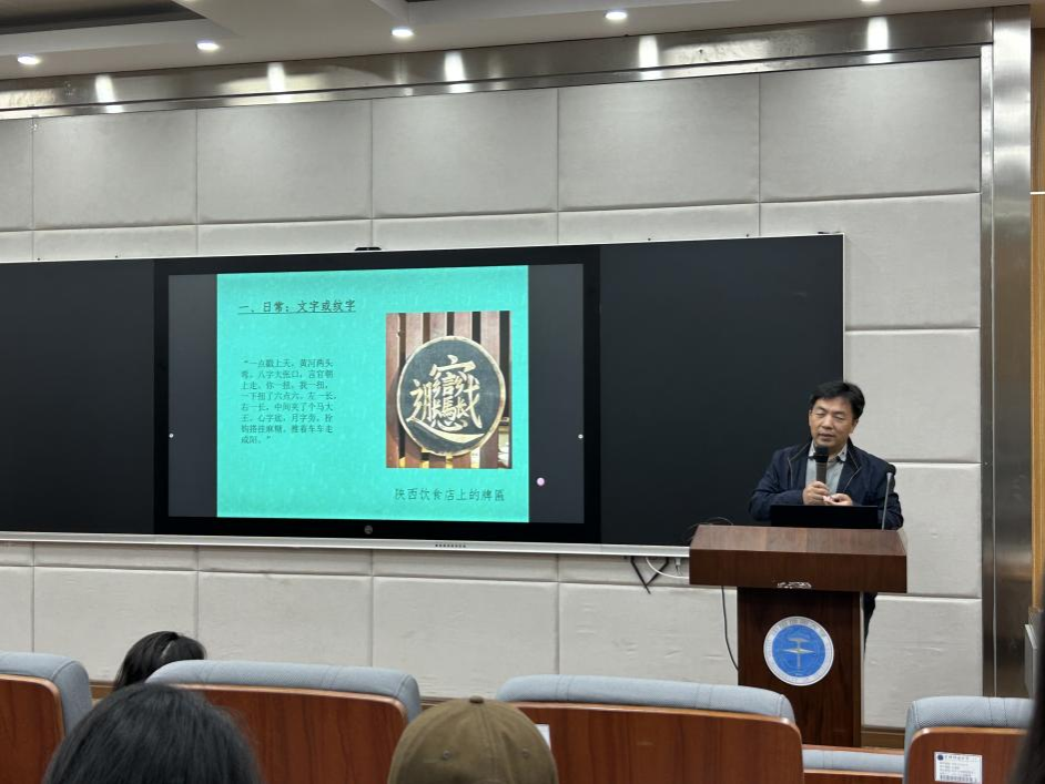 讲座结束后进行问答互动环节,练教授对于同学们的提问进行了耐心的解答。练春海教授在讲座中从多维角度讲解了图案与文字的关系,以及不同时代文化背景下的演变,讲座案例丰富、内容详实,帮助同学们对文字图像符号的有了更加深刻的理解。