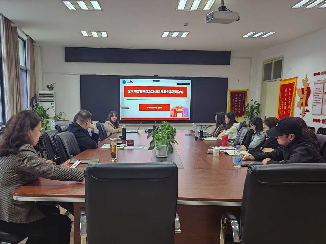 于艺媒楼1209组织召开2024年3月就业工作推进研讨会。学院领导班子、各系就业工作负责老师、专兼职辅导员出席本次会议,会议由学院辅导员单湉艺主持。