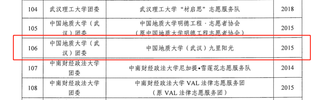 九里阳光艺术支教团队于2015年首次被授予湖北省“本禹志愿服务队”称号,并复核审评保留至今。