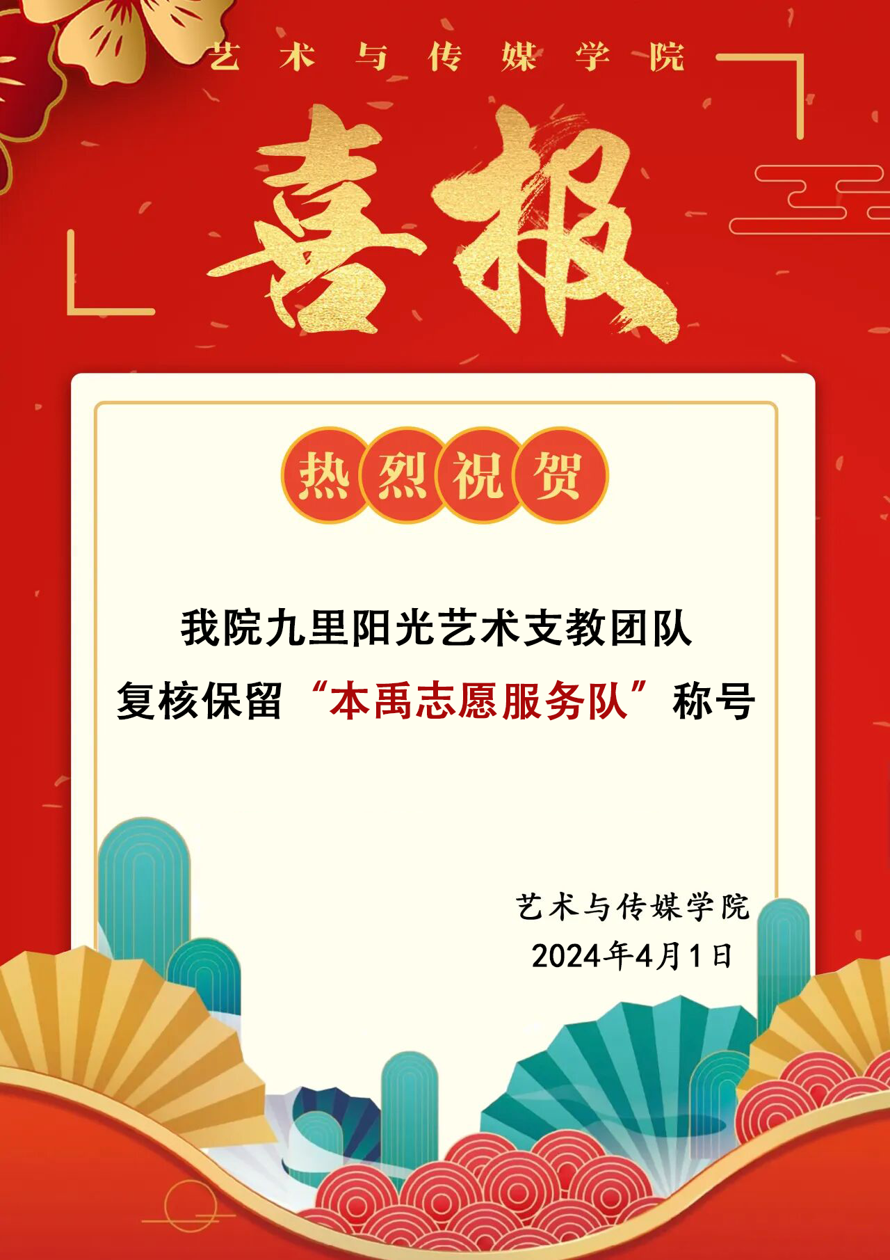 九里阳光艺术支教团队经复核保留湖北省“本禹志愿服务队”称号。