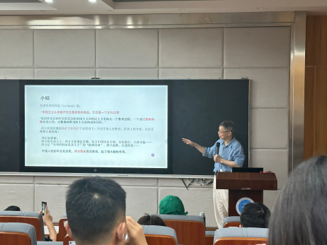 讲座开始之前,院长何清俊教授热情欢迎黄河清教授,然后向大家介绍了黄河清教授的研究领域,还隆重推介了黄河清教授的两本新著《言不必称希腊》《光从中华来》。
