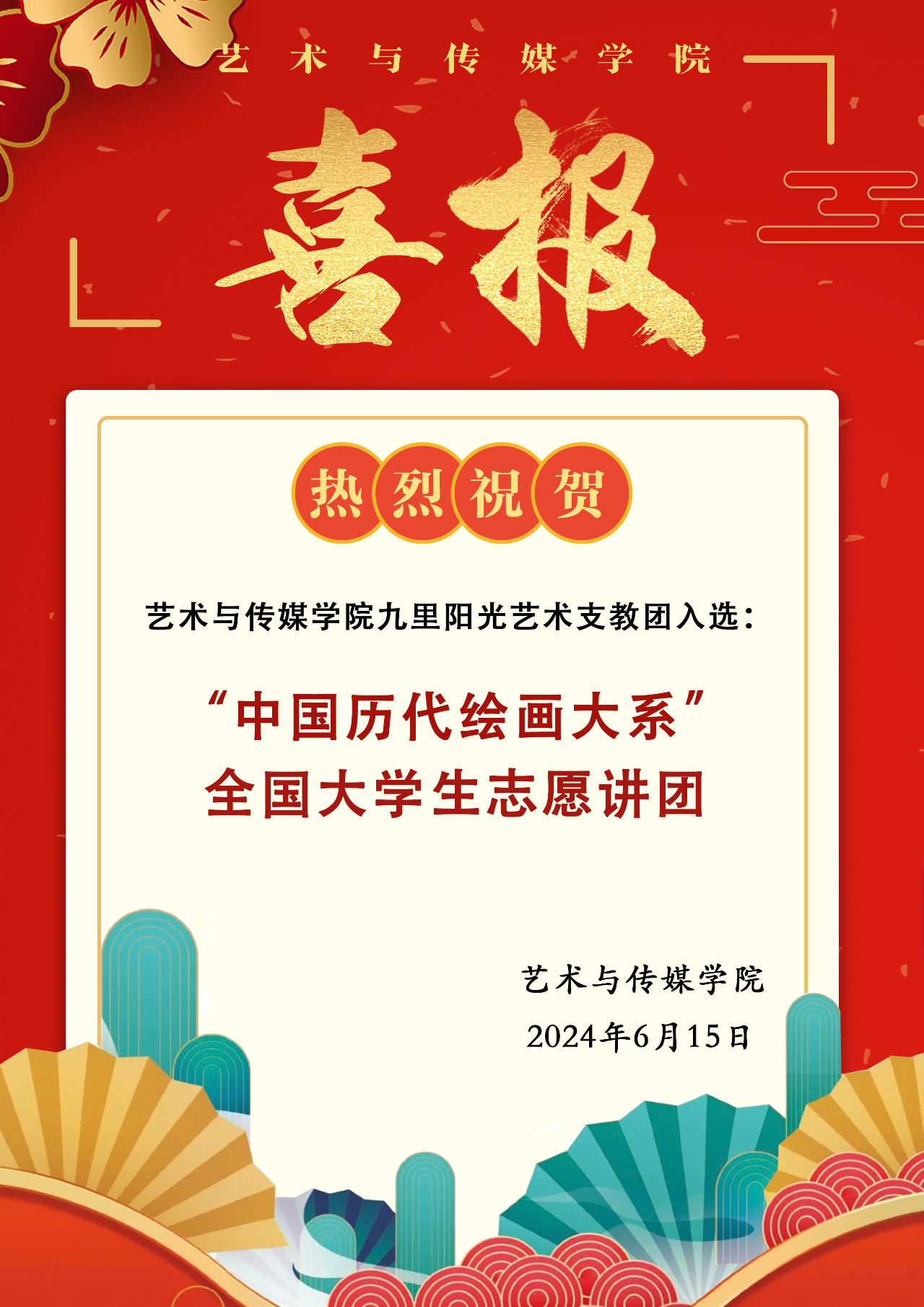 喜报 | 热烈祝贺 韩国三级 九里阳光艺术支教团入选“中国历代绘画大系”全国大学生志愿讲团!