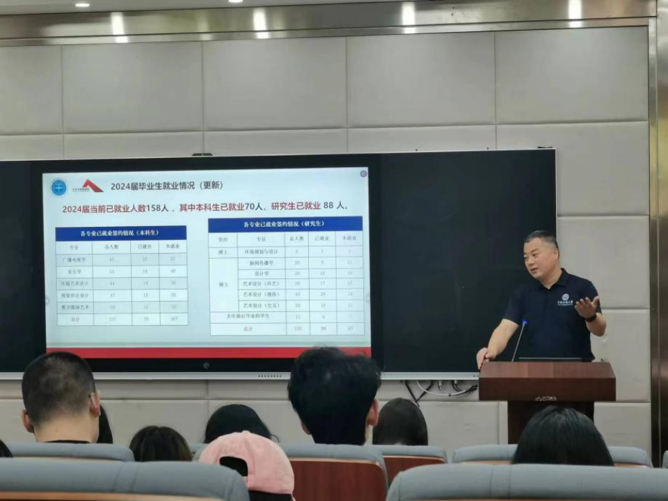 围绕“提质增效年”主题,在1104会议室开展“艺起向前 媒好未来”主题毕业生教育大会,并布置就业方案填报、审核、电子离校等相关工作事宜。学院党委副书记边建华、毕业年级专兼职辅导员及全体本科生、研究生参与会议,会议由辅导员单湉艺主持。