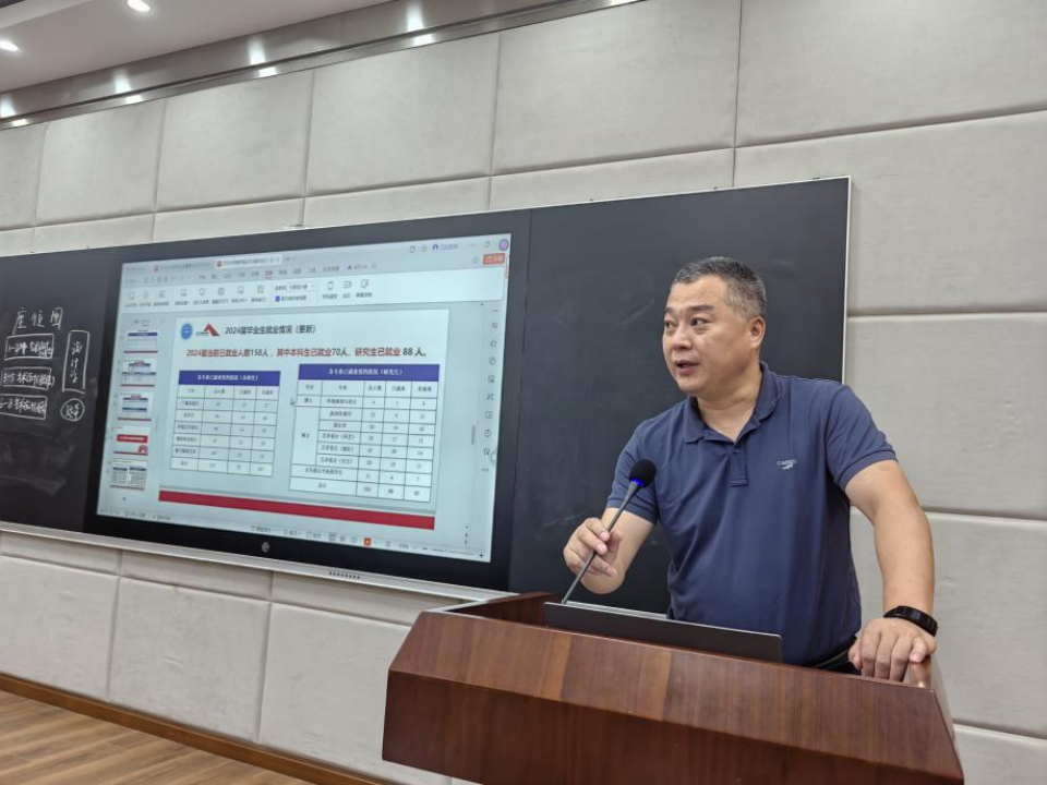 会议最后,学院党委副书记边建华做总结讲话。边书记指出2024届毕业生要高度重视今天会议布置的一系统工作,按照学院要求进行一系列毕业手续办理,包括就业方案上报、档案户口落实、毕业生登记表填报等。并对下一步就业工作做出工作布置,学院将持续为同学们提供周到、细心的就业服务和指导工作:如定期更新就业台帐,对就业困难学生进行精准的点对点帮扶工作;暑期加大访企拓岗力度,开拓更多就业岗位;鼓励未就业同学开展多种形式的灵活就业;希望未就业的同学抓紧求职黄金期,先就业、再择业。最后,边书记向全体2024届毕业生送出诚挚的毕业祝福,望大家在最美的青春年华,用最昂扬的高歌姿态,绽放最亮的光芒色彩。