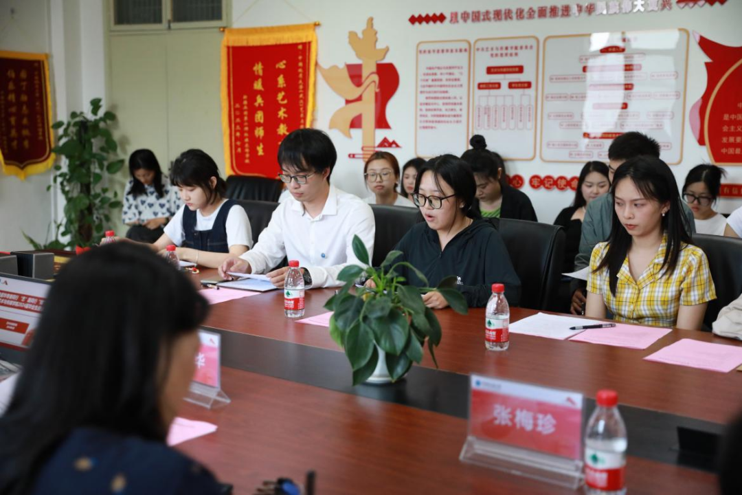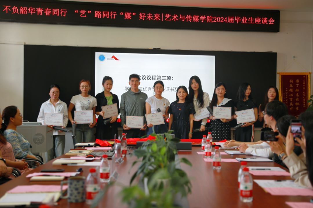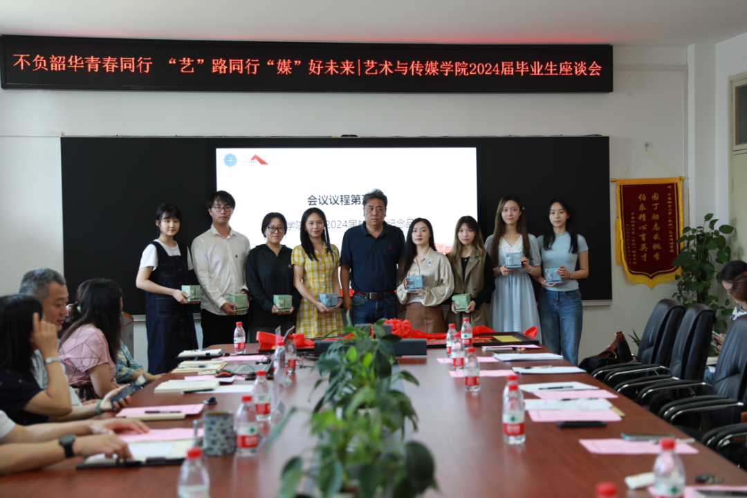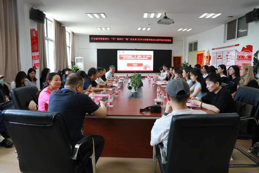 在1209会议室召开“艺路同行、媒好未来”2024届毕业生座谈会暨院领导接待日。会议由党委副书记边建华主持,学院党委书记晋曦、副院长张梅珍、副院长杨喆、各系系主任和支部书记、学工组专兼职辅导员、本科生优秀毕业生及研究生优秀毕业生参加会议。