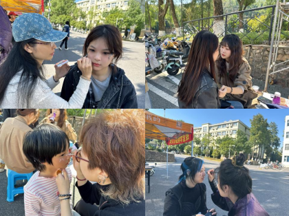 觅灮美育名师工作室的10名师生在校园内成功举办了一场别开生面的活动——“艺绘流光,彩映新颜”面部彩绘艺术实践活动。