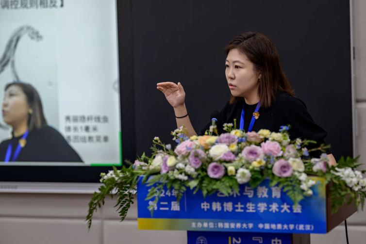1104学术报告厅和韩国安养大学美丽领导馆4楼会议厅线下会场共同举办“2024年第二届中韩博士生学术大会”。本届会议主题为“艺术与教育”,青年学者们围绕“AI时代”“历史”“艺术”“设计”“教育”“融汇”板块开展学术交流。