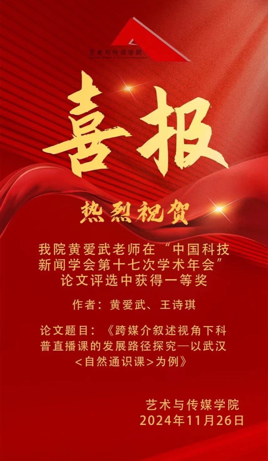 喜报 | 热烈祝贺韩国三级 黄爱武老师在“中国科技新闻学会第十七次学术年会”论文评选中获得一等奖