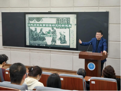 客座教授,并以《汉代历史故事图像研究的新进展》为题作主题讲座。讲座由学院副院长彭静教授主持,院长何清俊教授出席聘任仪式。