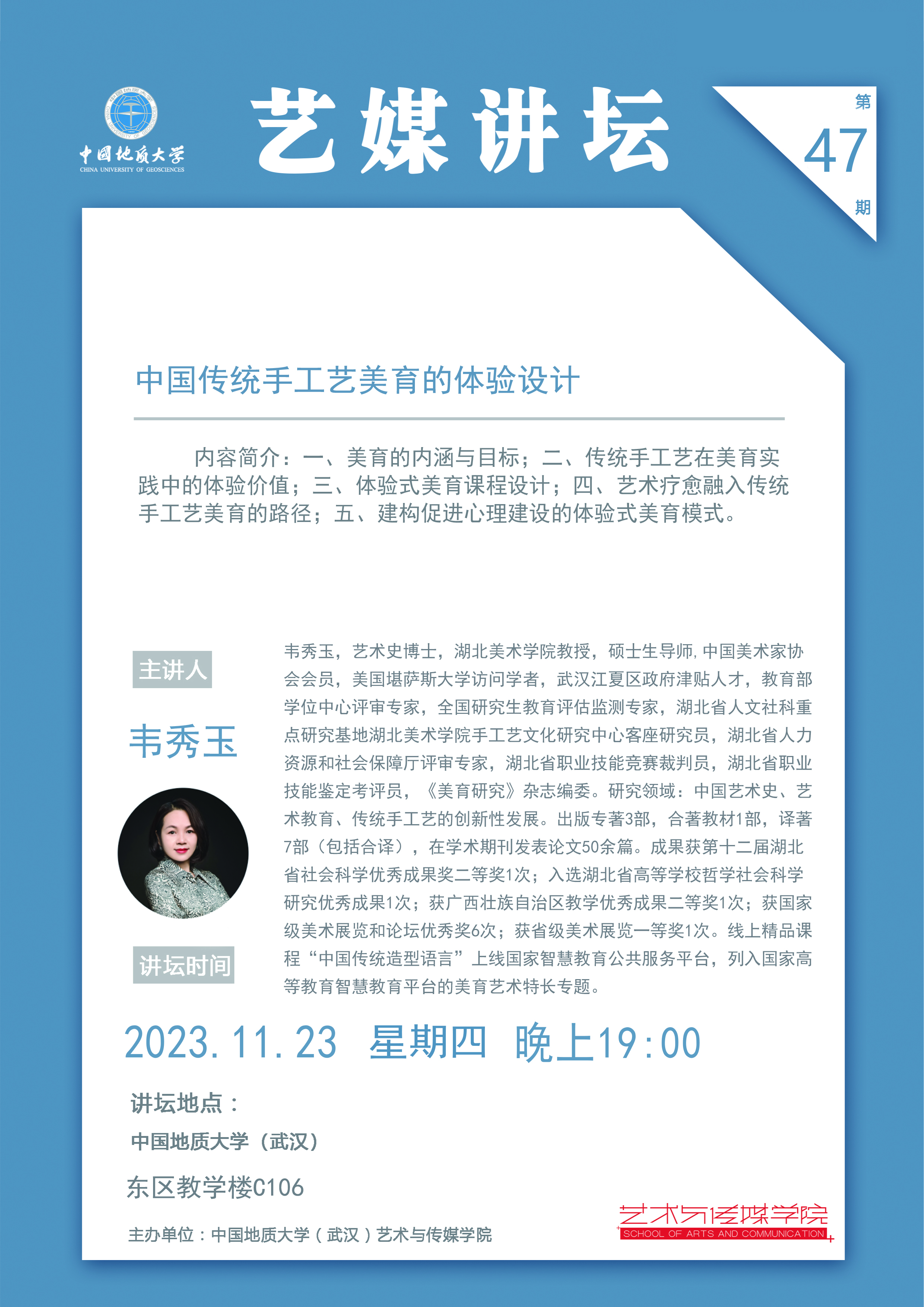【2023年11月23日】学术讲座:湖北美术学院教授韦秀玉老师讲座