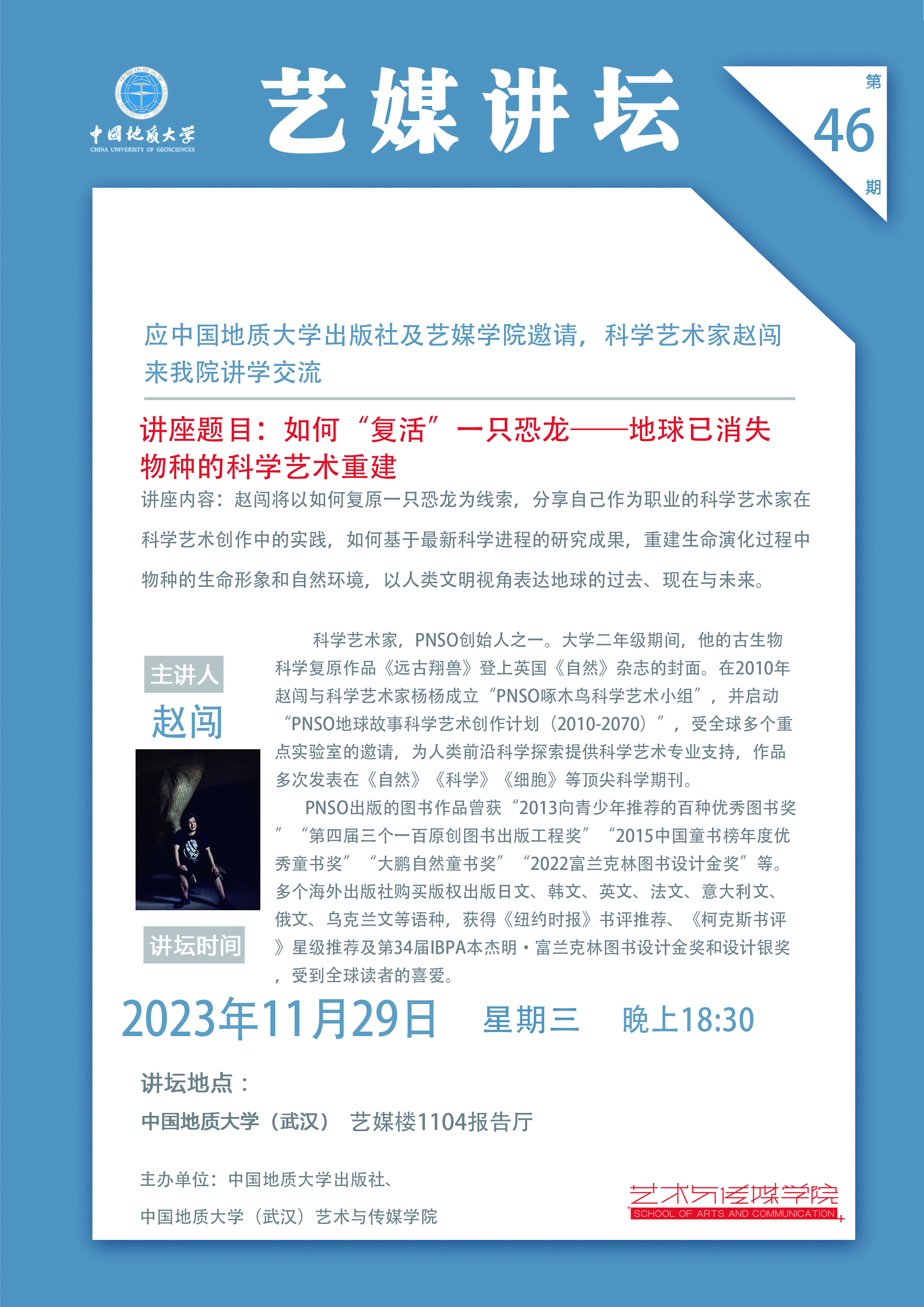 【2023年11月29日】学术讲座:应韩国三级 出版社及艺媒学院邀请,科学艺术家赵闯来韩国三级 讲学交流