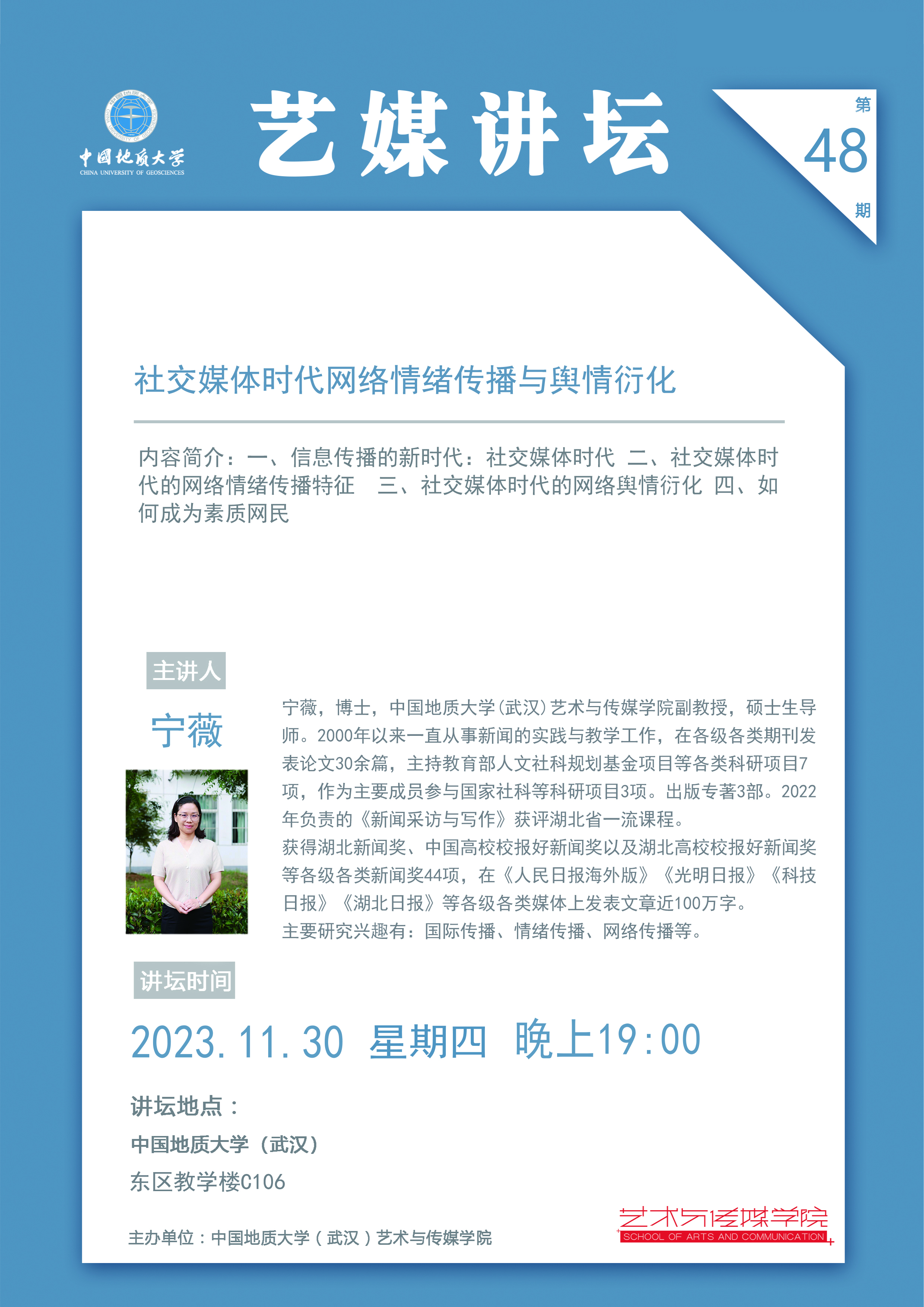 【2023年11月30日】学术讲座:韩国三级 (武汉) 韩国三级 副教授宁薇老师讲座