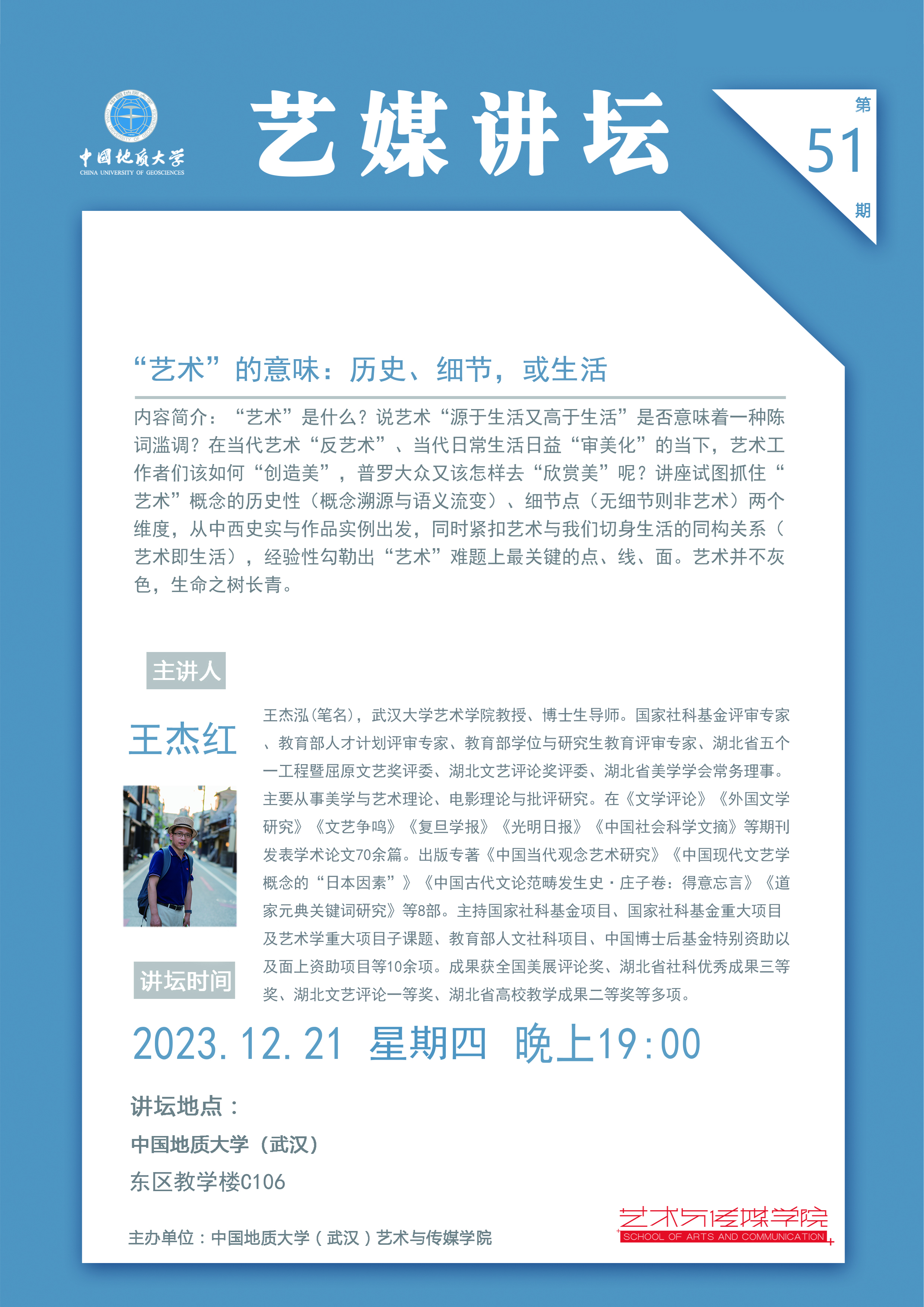 【2023年12月21日】学术讲座:武汉大学艺术学院教授王杰红老师讲座
