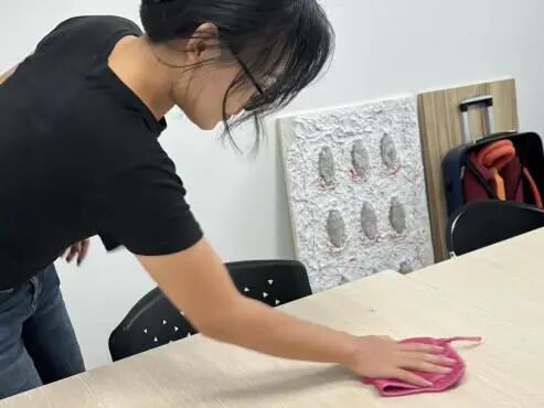 范冰洁同学在设计工作室清洁